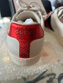 Sneakers in pelle bianca con pacth “Blind for love” , colori bianco, rosso, blu scuro. Tg 41 Tenute benissimo Originali Gucci