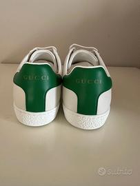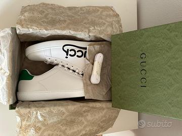Sneakers Ace in pelle da donna. Pelle bianca. Suola in gomma 20mm. Logo GG Gucci laterale gatto. Full set con la scatola.