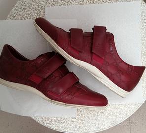 Sneakers GUCCI originali donna in pelle bordeaux con chiusura a strappo (velcro), usate un paio di volte, misura 37,5, suola in gomma bianca