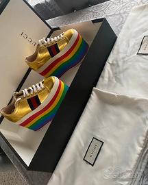Vendo scarpe gucci platform arcobaleno collezione 2017 numero 34.4 veste 35.5 prese da gucci in via roma nel pride del 2017 pagate 990€ praticamente nuove indossate una sola volta.