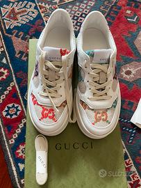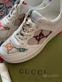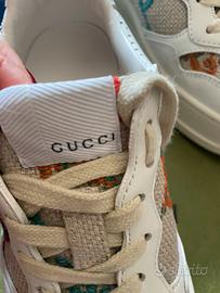 Sneakers donna gucci usate 1 volta. Molto belle colire bianco con inserti in canvas beige .logo ricamato multicolor. n 36 Dotate di scatola nuovissima.