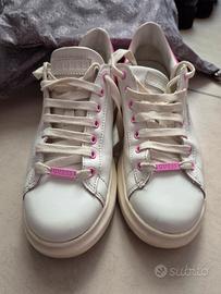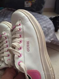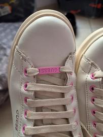 Vendo sneakers Guess donna vera pelle, colore bianco con particolare fucsia. Numero 38, ottime condizioni, calzata comoda