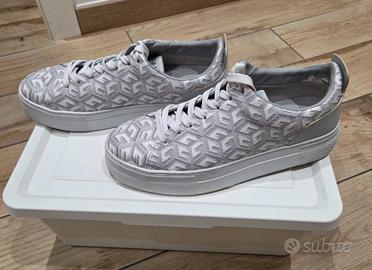 Sneakers in ecopelle stampata. Fodera interna in tessuto, soletta estraibile. Fondo gomma, altezza suola 3.5 cm. Indossate poche volte, vestibilità buona.
