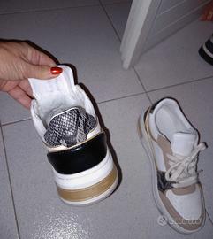 guess sneakers n 36 bianche beige e pitonate ecopelle indossate una volta perfette