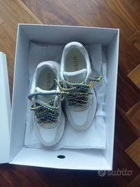 Vendo sneakers Guess originali, taglia 36, complete di scatola originale e lacci bianchi extra inclusi. Le scarpe sono state indossate pochissime volte e si presentano in condizioni pari al nuovo / come nuove. Le vendo solo perché purtroppo mi vanno strette. Modello molto bello e particolare, con base chiara tonalità bone/bianco panna, dettagli rosa sul tallone e lacci multicolor già montati, che rendono la scarpa davvero originale. In più sono presenti anche i lacci bianchi extra, perfetti per un look più semplice e pulito. Le condizioni sono ottime: scarpe ben tenute, pulite, con suola in ottimo stato e scatola originale presente. Ideali per chi cerca una sneaker Guess attuale, versatile ma con un tocco fashion. 📦 Scatola originale inclusa 🤍 Lacci bianchi extra inclusi 👟 Indossate pochissimo 📏 Taglia 36 💶 Prezzo retail: 135 euro ❗Vendo solo perché mi stanno strette Scrivimi pure per altre foto o dettagli. Nel mio armadio trovi anche altri articoli interessanti. #Guess #GuessSneakers #SneakersDonna