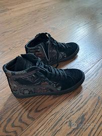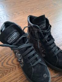 Vendo marca HAPPINESS sneakers scarponcini lacci nr 40 pelle/camoscio nero e fiori usate INICA volta perchè troppo grandi 35,00 euro + eventuale spedizione