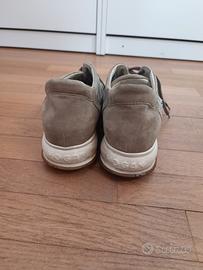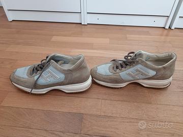 Sneakers Hogan da donna in pelle e tela colori beige e azzurro, misura 37,5