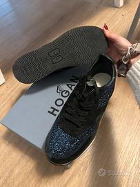 Sneakers Hogan donna originali Color blu denim e nero con palettes Mai indossate Numero 40