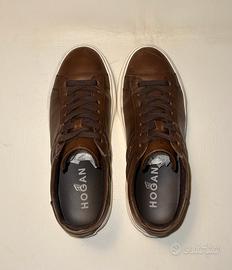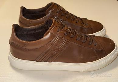 sneakers Hogan H365 originali da uomo, in pelle marrone, usate ma tenute molto bene. Modello elegante e versatile, con il classico logo “H” laterale inciso e una linea pulita che le rende perfette sia per look casual che più curati. La pelle è di ottima qualità e ancora morbida, con normali segni di utilizzo che non compromettono estetica e comfort. 🔹 Marca: Hogan 🔹 Numero: 6 pari al 40 / lungh. Suolette 26cm 🔹 Colore: Marrone 🔹 Materiale: Pelle 🔹 Condizione: Usate in ottimo stato 🔹 Caratteristiche: •Logo H laterale •Suola comoda e resistente •Scarpe ancora strutturate e durevoli Ideali per chi cerca una scarpa firmata a prezzo conveniente. 💬 Disponibile per info o altre foto 📦 Spedizione disponibile
