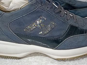 Sneakers Originali Hogan Interactive - Deluxe Brand - in camoscio con strass n.38,5 - UK 5,5 - Buone condizioni – Made in Italy - • Logo: H Hogan con strass ricamati • Interni: Con logo • Modello: Stringato • Punta: Tonda • Caviglia: Imbottita • Suola: Platform • Materiale: In pelle di vitello scamosciata • Fantasia: Ricamo Soletta estraibile e lavabile - Lavorazione artigianale - Buone condizioni come dimostrano le foto – ** spedizione immediata , entro 24 ore ** ** imballo ben curato **