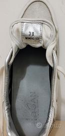 Sneakers Hogan Interactive da donna bianche in pelle e tela. Usurate sulla punta come da foto. Taglia 38