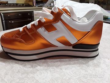 Vendo x misura errata nuove mai indossate con scatola originale e busta porta scarpe, corredate di stringhe di ricambio sneakers Hogan, numero 37,5 di pelle, colore arancione metallizzato. Ottimo regalo di Natale -prezzo retail € 350,00