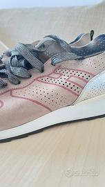 Sneakers Hogan Rebel originali – Donna – Taglia 41 Vendo sneakers Hogan Rebel originali, donna taglia 41, colore beige / rosa cipria, in vera pelle scamosciata, modello fashion e molto comodo. Scarpe usate ma in ottime condizioni, con normali segni di utilizzo sulla suola, come visibile in foto. Tomaia ben conservata, nessun difetto strutturale. ✅ Caratteristiche: Marca: Hogan Rebel 100% originali Taglia: 41 (Women’s size) Materiale: pelle scamosciata con inserti in pelle Colore: beige con dettagli rosa Suola in gomma Hogan Rebel Comode e versatili, ideali per uso quotidiano 📍 Consegna a mano oppure spedizione disponibile.Foto reali dell’articolo.Per info o altre foto contattami senza impegno.