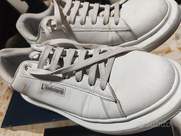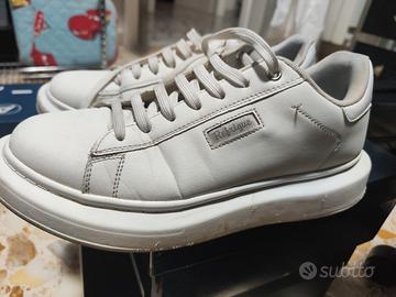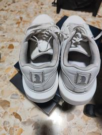 "Sneakers in pelle Refrigue" o sotto la linea "Refrigue Footwear". Si tratta di una sneaker platform (o "chunky sneaker") da uomo o unisex, caratterizzata da una suola piuttosto alta e piatta. Il design è fortemente ispirato alle celebri Larry di Alexander McQueen, uno stile che Refrigue propone regolarmente nelle sue collezioni. La scarpa è usata ma consiglio a chi ha 42/42,5 di piede, perché calvano strette. Prezzo trattabile. No perditempo. Grazie