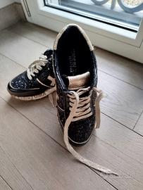 Sneakers in pelle trendy oro e nero glitterato, usate pochissimo. Made in Italy