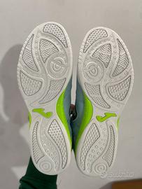 Sneakers sportive Joma Top Flex di colore azzurro con dettagli verdi. Comode e ideali per attività indoor.