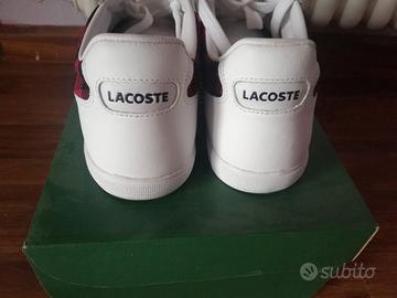 sneakers lacoste donna n40. le scarpe su entrambi i lati hanno una fantasia tartan nera e rossa. ottime condizioni, non sono state mai indossate, dotate di scatolo originale.