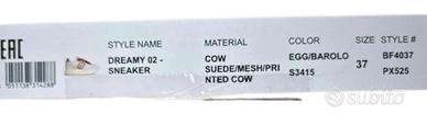 La tomaia è in tessuto e camoscio, con il logo Liu Jo a contrasto sui lati e dettagli metallici dorati sul tallone che aggiungono un tocco luminoso e femminile.
