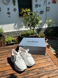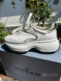 Vendo Sneakers Hogan donna, colore bianco e nero numero 37 con scatola hogan, dust bag da viaggio inclusa e lacci neri. Scarpe usate solo un paio di volte. Condizioni pari al nuovo. Preferibilmente consegna a mano su provincia di Milano, oppure con spedizione a scelta e a carico e responsabilità dell’acquirente.