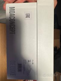Vendo sneakers MOA CONCEPT pelle nera stampa coccodrillo, usate un paio di volte perché troppo piccole. Veste un 38.5 piuttosto che 39…