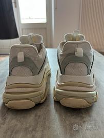 Sneakers modello Balenciaga Triple S. Usate ma ancora in ottimo stato generale. Suola leggermente sporca ma integra, tomaia pulita e senza strappi. Comode, solide Non ho scatola né scontrino.