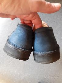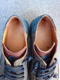 Sneakers di pelle morbidissima, suola in gomma, lacci elastici. 3 colori: grigi i lati, blu i talloni, bordeaux la punta. Sono peso medio, non invernali. Pianta comoda. Li vendo solo perché per me sono un pochino corte, infatti le ho potute usare davvero molto poco