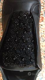 Scarpe sneakers nere n.38 senza lacci, con linguetta con elastici laterali coperta di applicazioni a forma di fiore luccicanti.
