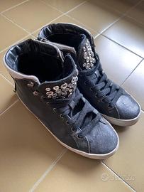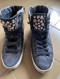 Sneakers alte in pelle nera con strass. Zip laterale. Marca Crime London. Tg. 36. Usate poco, in buone condizioni. #sneakers #scarpedaginnastica #crimelondon #strass #pelle #nero #36