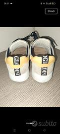 Suola inferiore: Battistrada ancora in buono stato con grip conservato. Scarpa robusta e di alta qualità, perfetta per il tempo libero O per un look da ufficio non troppo formale. II contrasto tra il grigio e il dettaglio giallo le rende molto originali e facili da abbinare.