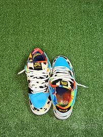 Modello iconico e super riconoscibile, caratterizzato dal design colorato con fantasia mucca e dettagli multicolor. Perfette per chi ama lo streetwear e pezzi unici. Taglia: 45 Condizioni: buone Lacci originali Interno e dettagli perfetti Scarpe molto rare e ricercate ideali per collezionisti o per dare un tocco originale ai tuoi outfit.