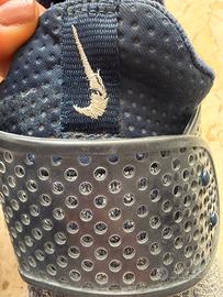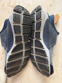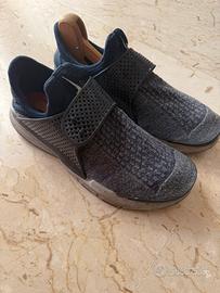 Sneakers Nike dal design moderno e comodo (sembra di indossare una calza). Perfetta per sport e uscite casual. Colore blu scuro con suola grigia. Condizione della suola perfetta, utilizzate pochissime volte (vedi foto). Segnalo leggero filo scucito sul simbolo Nike nella parte davanti (vedi foto dedicata).