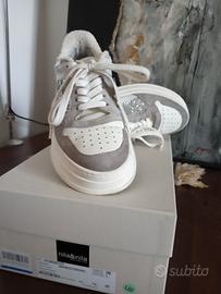 sneakers Nila & Nila originali numero 38, usate una sola volta, vendo perché ho acquistato un numero sbagliato, io calzo un 37 e anche con un plantare, queste per me sono troppo lunghe. Calzata comoda, anche per pianta larga. Calzano un 38 abbondante. Sono in vera pelle e camoscio e il plantare è in Memory. la spedizione costa 9,90 euro.