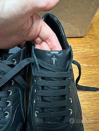 Sneakers in nappa nera, collezione Paciotti, modello Softly Black. Fondo piu alto dietro, acquisto numero sbagliato, tg. 43, pagate € 336,00. Complete di scatola.