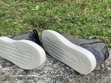 Sneakers alte molto belle, colore nero e verde con zip laterale. Acquistate qualche tempo fa, le ho trovate non giuste per i miei piedi per cui ho deciso di renderle. Purtroppo, preso da altri impegni, ho fatto scadere i termini per il reso. Le ho indossate e camminato una sola volta per poco tempo per verificare la calzata. In pratica sono come nuove. A listino il prezzo è di € 179,00.