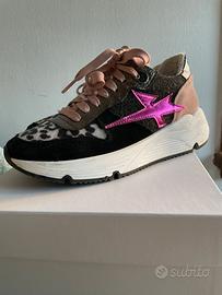 Vendo per inutilizzo sneakers eleganti marca PLEASE numero 38 in camoscio nero con il pelo di colore rosa antico.