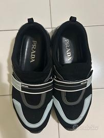 Sneakers Prada originali modello sportivo con chiusura a strap e dettagli logo.
