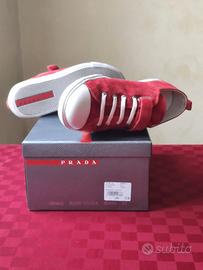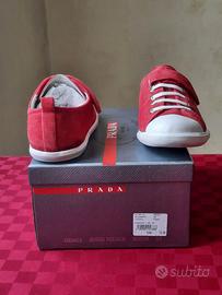 Sneakers Prada in pelle di vitello scamosciata colore rosso da ragazzo/donna numero 35 chiusura velcro