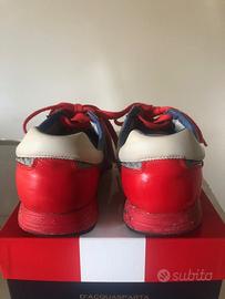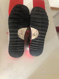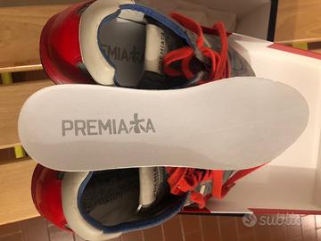 Sneakers Premiata 483 originali N.39. Unisex, grigie rifinite in rosso nel tallone e nel bordo della suola con lacci rossi. Soletta nuova perché usate con plantari personali. Leggermente scolorito il rosso nel bordo esterno ma in ottime condizioni perché usate poco