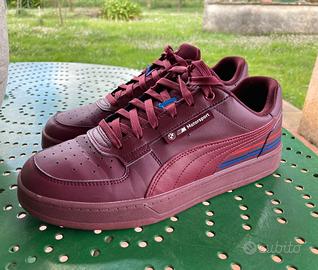 Scarpe Puma modello Caven 2.0 con design ispirato a BMW Motorsport. colore Bordeaux - Dettagli a righe rosse e blu sul lato. - Logo BMW Motorsport sul retro e sul lato. Indossate una decina di volte