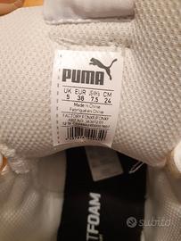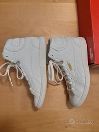 Scarpe da ginnastica da donna stringate alte, in pelle, bianche, praticamente nuove. Mod. Vikky Mid Deboss, indossate solo per prova, originali, con scatola. Tg n. 5 (38).
