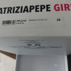 sneakers ragazza Patrizia Pepe girl in pelle bianco e argento messe una sola volta per errato numero