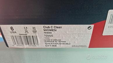 Sneakers Reebok Club C Clean Tennis in pelle bianca con dettagli blu.