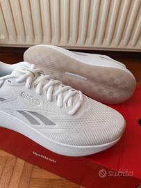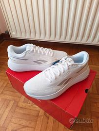 Vendo sneakers unisex Reebok DMX Comfort + 2.0, colore bianco con dettagli grigi, taglia 40.5 EU Nuove, mai utilizzate Scarpe pensate per il massimo comfort nell’uso quotidiano: la tomaia in mesh traspirante mantiene il piede fresco anche dopo molte ore, mentre la tecnologia DMX Moving Air nella suola distribuisce l’aria ad ogni passo, rendendo la camminata molto più morbida rispetto alle classiche sneakers Le sovrapposizioni hot melt offrono supporto strategico senza compromettere la leggerezza, mentre il colletto imbottito e la lingua garantiscono una calzata ancora più morbida e anatomica Il design è pulito e moderno, facile da abbinare sia a outfit sportivi che casual La suola in gomma traslucida non solo migliora l'aderenza e la durata, ma mette anche in risalto visivamente i canali d'aria della tecnologia DMX, rafforzando l'identità innovativa del modello Ideali per tutti i giorni, per camminare tanto o semplicemente per avere una scarpa comoda ma curata nello stile. Condizione: nuove, con scatola