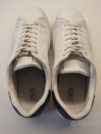 Scarpe/sneakers in ecopelle bianche. Punta tonda e tacco blu. Marca Zara. Indossate solo alcune volte.