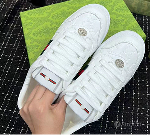 Vendo queste sneakers Gucci Screener basse completamente nuove, mai usate. Sono un regalo di un amico ma non mi calzano, quindi cerco di darle a qualcuno che le apprezzerà!