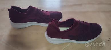 Sneakers slip-on bordeaux di tessuto elastico , perfette per un look casual e comodo. Le scarpe hanno anche i lacci in dotazione per chi preferisce indossare i lacci. - Design moderno con dettagli a contrasto - Tomaia in tessuto traspirante elasticizzato - Suola bianca flessibile. - Sono dotate di morbide solette interne in memory - Sono idonee per lunghezza piede da 27 a 28 cm