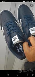 sneakers Sportive pelle firmate Umbro color Blue è White è Grey foderato con plantare morbido Anatomico estraibile Memory firmato Umbro fondo gomma antiscivolo originale con cuciture circolare fondo firmate Umbro prezzo originale 79,00 euro scontato 69,00 euro