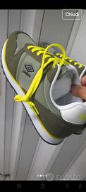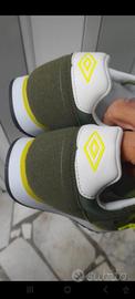 sneakers Sportive firmate Umbro color verde oliva e giallo Alta qualità con plantare morbido Anatomico estraibile Memory firmato Umbro fondo gomma antiscivolo originale marchiato Umbro prezzo originale 79,00 euro scontato 69,00 euro