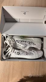 Superga nuove n. 36 con scatola originale. Bianche in pizzo ricamato. Mai messe comprate per eventuale necessità per un matrimonio. Le stringhe sono in raso ma il ricambio originale bianco classico è incluso e mai utilizzato. Preferibile scambio a mano in provincia di Bergamo, Monza e Brianza, Milano. Possibile accordarsi per spedizione. Prezzo leggermente trattabile.