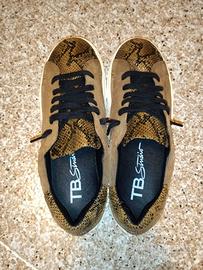 Sneakers TB Studio con dettagli in pelle scamosciata e inserti effetto pitone.